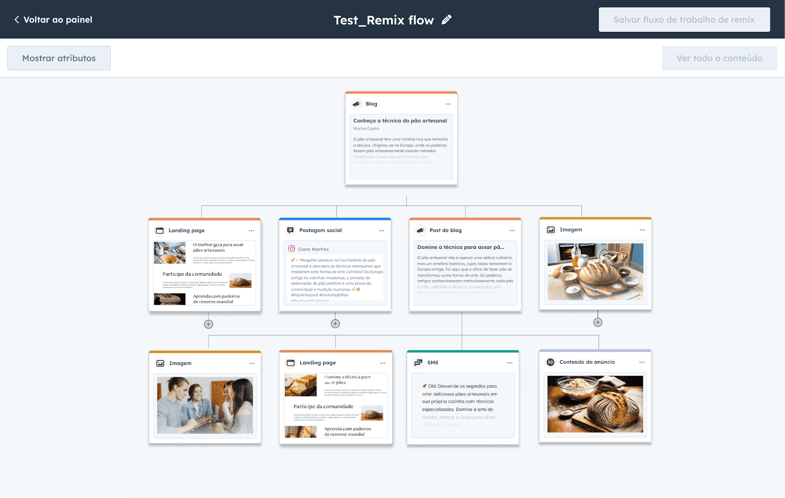 O Agente de Conteúdo permite que profissionais de marketing criem e adaptem conteúdo para diversos canais rapidamente, desde blogs até podcasts e estudos de cas com informações de tom de voz e histórico de conteúdos da marca.