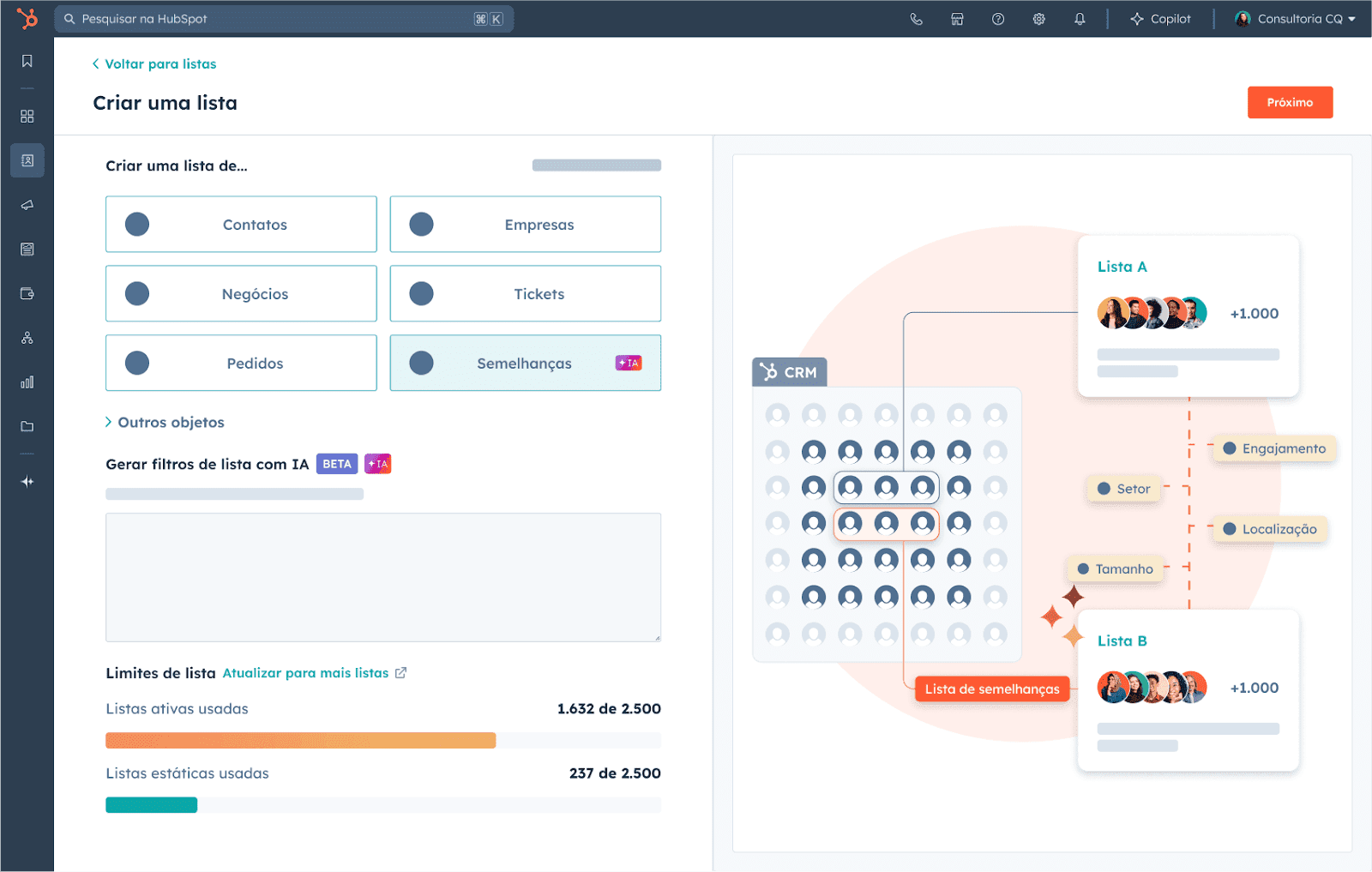 O novo recurso de Listas de Lookalike (ou Listas de Semelhanças) utiliza a IA para examinar automaticamente os padrões presentes em contatos de alta conversão e cria uma nova lista de prospects semelhantes.