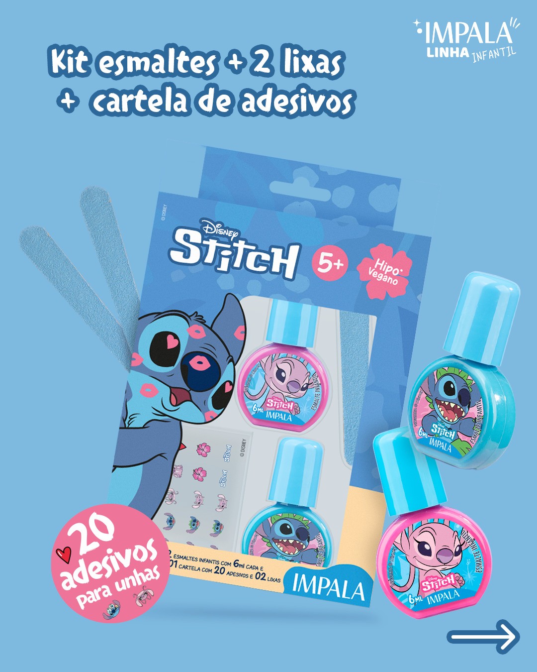 A Impala acaba de apresentar sua nova coleção infantil, inspirada em Stitch, um dos personagens mais queridos da Disney. O lançamento acompanha a chegada do live-action “Lilo & Stitch” nos cinemas, combinando itens de beleza que estimulam criatividade e expressão desde a infância.