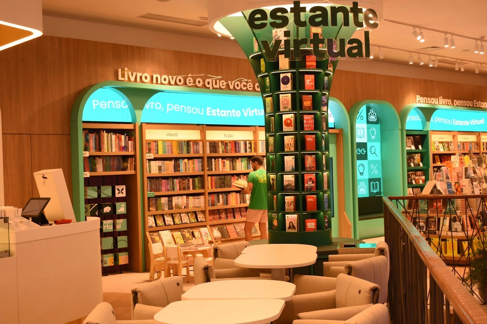 Por fim, a Estante Virtual inaugura seu primeiro espaço físico com livros novos, usados e raros. A presença integrada amplia o fluxo, fortalece a identidade do ecossistema e maximiza as oportunidades de retail media.