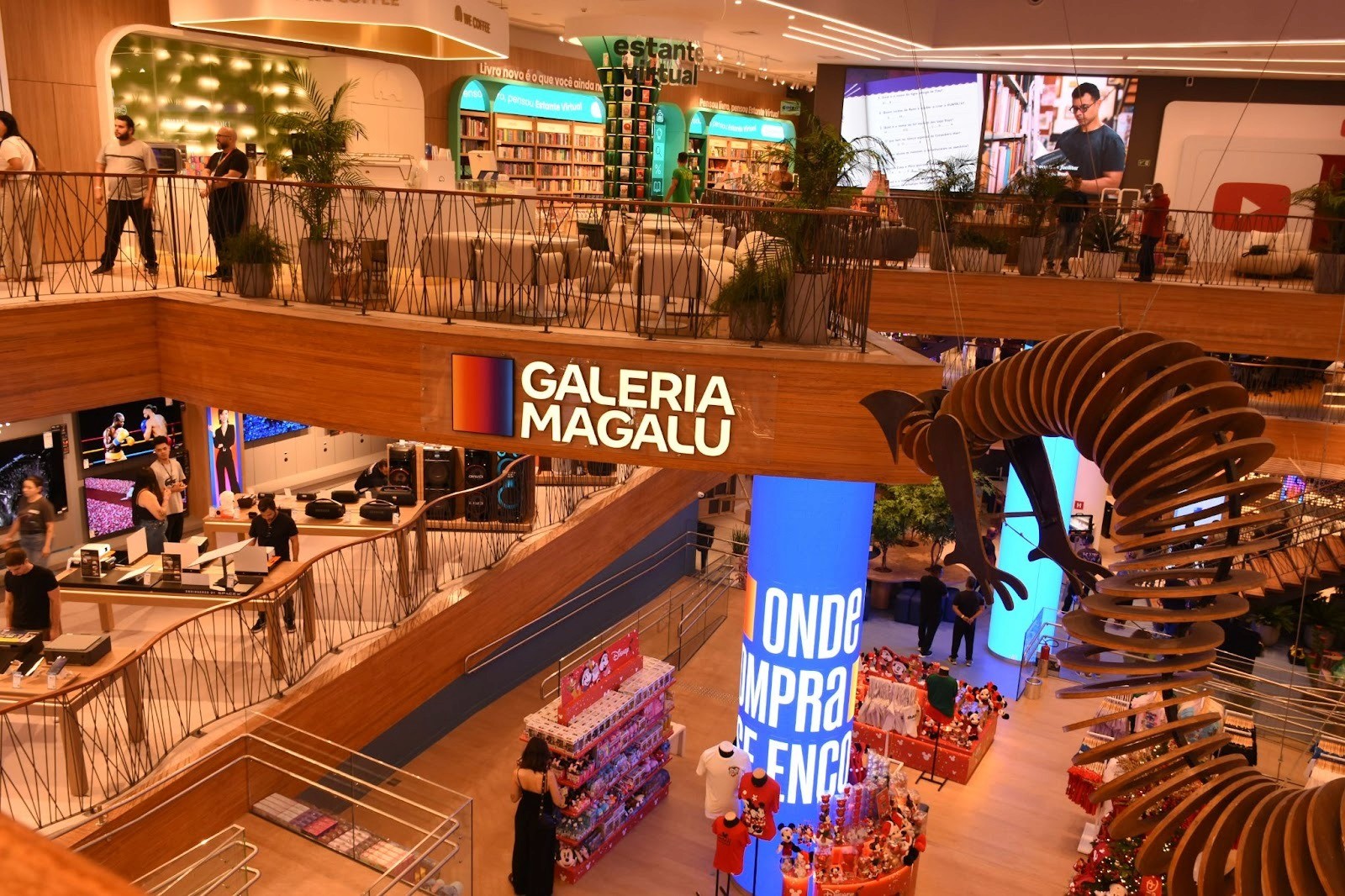 A Galeria reúne as cinco marcas estratégicas do grupo — Magazine Luiza, Netshoes, Época Cosméticos, KaBuM! e Estante Virtual — em um modelo multimarcas inédito no país. Cada área foi pensada para reforçar pilares de experiência e omnicanalidade: a Casa da Lu funciona como brand place para ativações, já a KaBuM! opera uma arena gamer para experimentação.