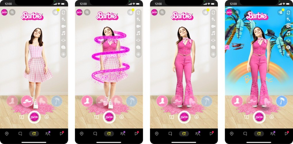 A Warner Bros. Discovery lançou uma campanha no Snapchat AR para gerar buzz para o próximo filme da Barbie. Com a estreia da nova Barbie Wardrobe AR Lens, os Snapchatters podem se ver usando looks inspirados nas roupas de Margot Robbie e Ryan Gosling. O guarda-roupa contará com várias opções de roupas e acessórios para os usuários experimentarem, todos inspirados nos figurinos do filme.