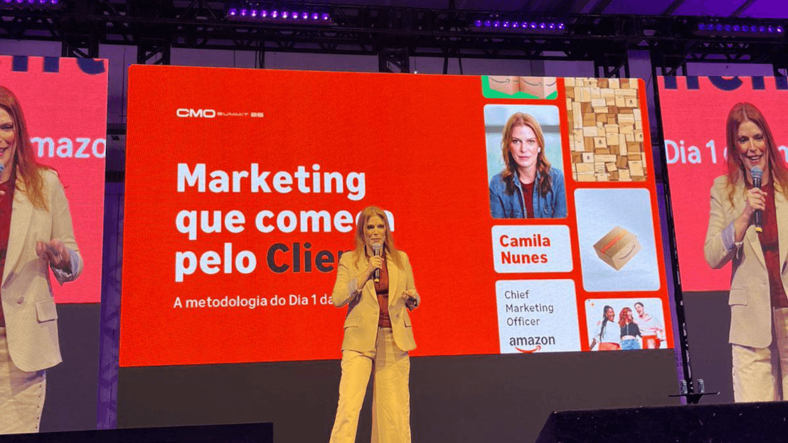 “Nos empenhamos todos os dias em sermos a empresa mais centrada no cliente no mundo. Isso significa oferecer os pilares essenciais de uma loja: frete rápido, bons preços e vasta seleção de produtos”, afirmou Camila Nunes, CMO da Amazon Brasil, durante a abertura do segundo dia do CMO Summit 2026.