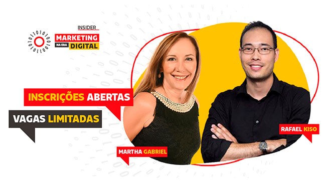Se encerram hoje, às 23h59, as inscrições para a jornada Insider do Marketing na Era Digital, a mais nova parceria educacional entre duas das principais referências do mercado online nacional: Martha Gabriel e Rafael Kiso.