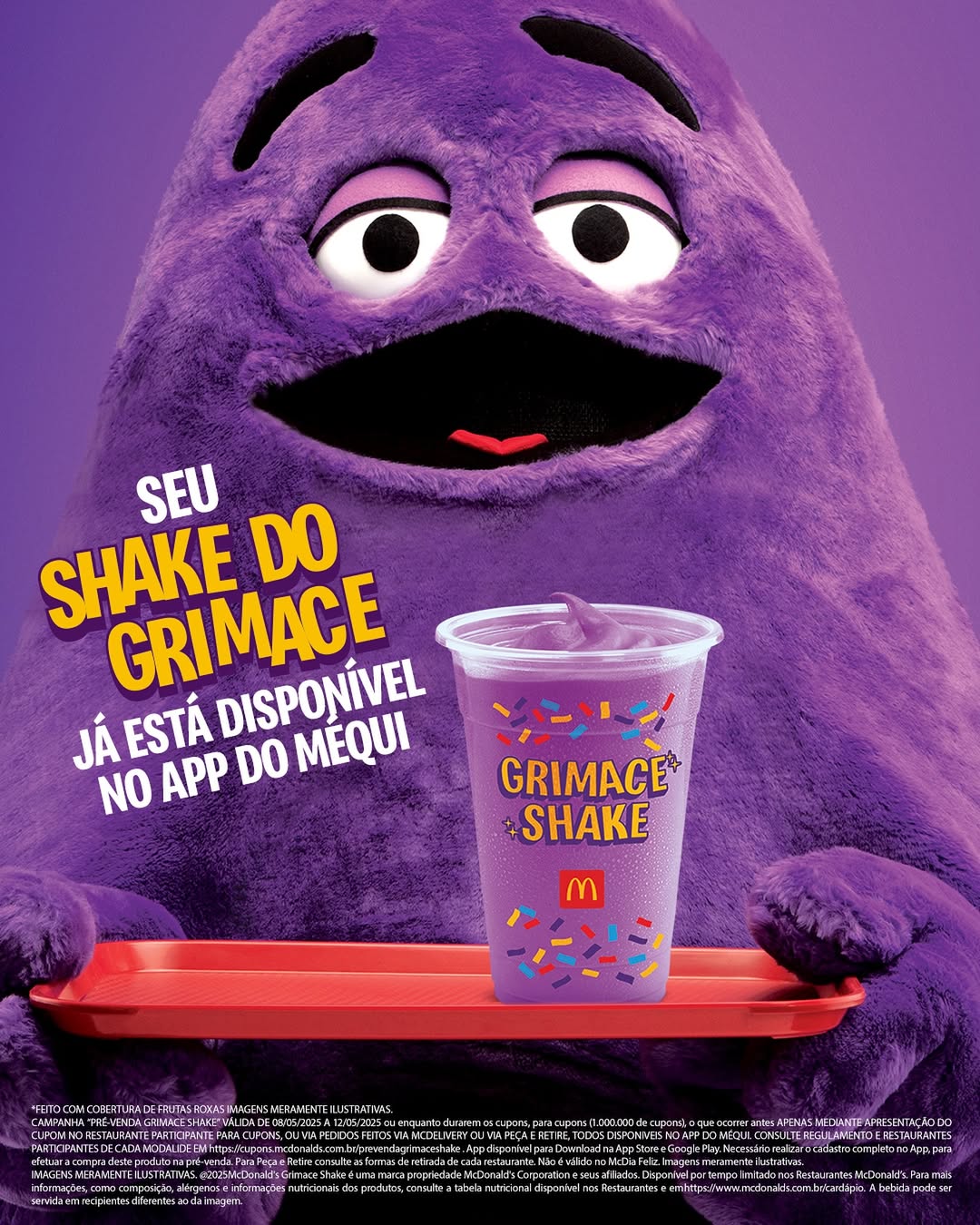 O McDonald’s estreia uma websérie especial em parceria com o TikTok, aproveitando o retorno de Grimace ao Brasil. A série apresenta o personagem ao público da Geração Z, com episódios em que ele conhece influenciadores populares dessa geração e compartilha seu novo McShake de frutas roxas, sabor exclusivo da temporada.