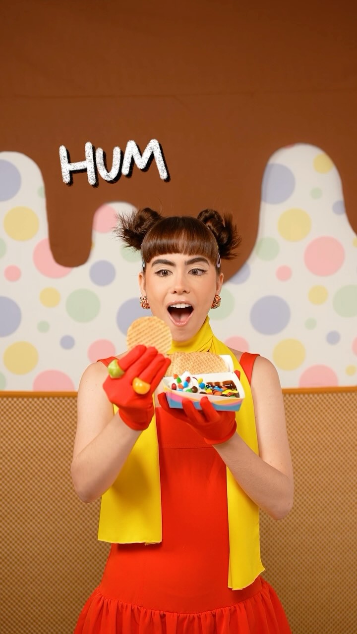 No vídeo, ela interpreta três personagens que consomem a sobremesa de maneiras diferentes, enquanto são analisados por uma especialista em MixDip, destacando a versatilidade e o aspecto divertido da experiência.
