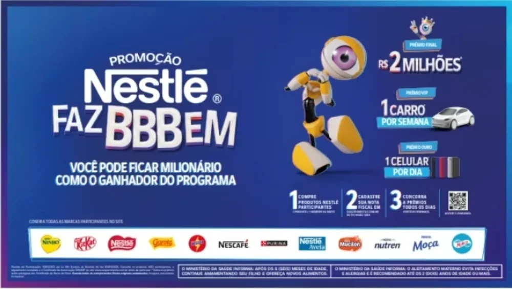 Fora de casa, a campanha “Nestlé Faz BBBem” promete engajar consumidores com prêmios diários e um sorteio final que transformará um cliente em milionário. Durante os 100 dias do programa, que começou no dia 13 de janeiro, os participantes terão acesso exclusivo a um novo sabor, desenvolvido especialmente para esta edição.