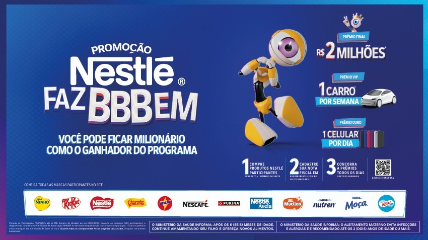 Como uma das patrocinadoras do Big Brother Brasil, a Nestlé lança uma campanha que promete engajar os consumidores de fora da casa, oferecendo prêmios atrativos. Com o mote "Você pode ficar milionário como o ganhador do programa", a promoção sorteará um carro por semana (Prêmio VIP) e um celular por dia (Prêmio Ouro), além de uma premiação final de R$ 2 milhões.