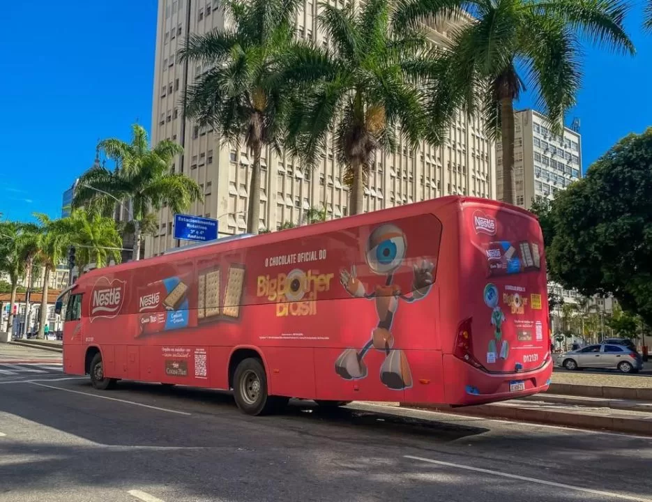 Patrocinadora do BBB 24, a Nestlé alçou o Choco Trio ao posto de chocolate oficial da casa mais vigiada do Brasil. E para compartilhar a conquista com o público carioca, a marca se uniu à Itabus, empresa de MOOH com destaque na mídia em ônibus. Com a parceria, um veículo envelopado com logos de Nestlé e Big Brother circula pela orla do Rio de Janeiro.