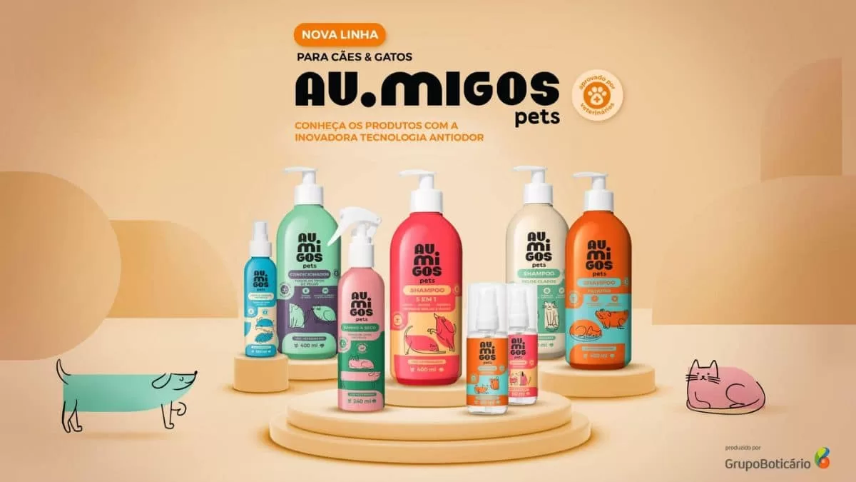 O Grupo Boticário entrou em uma nova categoria de produtos: Pet Care. A linha AuMigos Pets será lançada dia 30 de outubro e contará com seis produtos de higiene: shampoo 5 em 1, shampoo pelos claros, shampoo filhotes, condicionador, banho a seco e o limpa e hidrata patinhas. Além disso, a marca desenvolveu colônias para cães e gatos que foram elaboradas com tecnologia antiodor. Os preços dos produtos partem de R$39,90 e podem chegar até R$59,90.