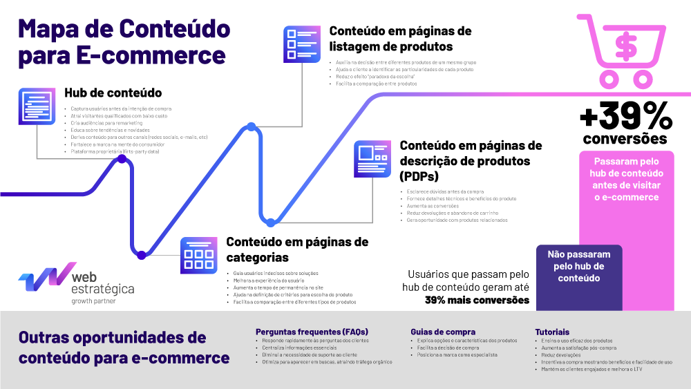 Segundo um estudo realizado pela Web Estratégica utilizando dados internos, usuários que passam pelo hub de conteúdo geram até 39% mais conversões no e-commerce.
