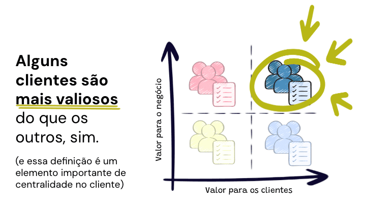 - Priorização de clientes a partir do maior potencial de geração de valor mútuo (valor para o negócio e valor para o cliente);