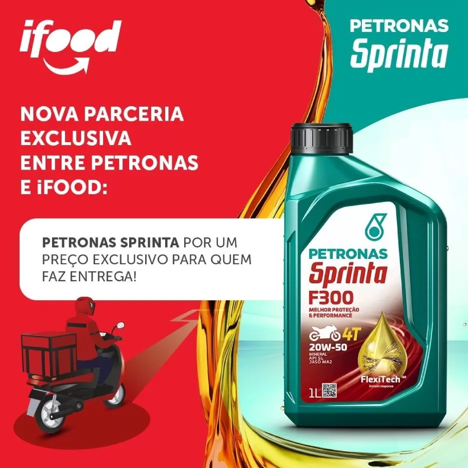 A Petronas e a empresa iFood fizeram uma parceria exclusiva com o objetivo de oferecer os lubrificantes Petronas Sprinta F300 20W-50 com preço fixo para todos os entregadores da plataforma online, por meio da seção Delivery de Vantagens do app.
