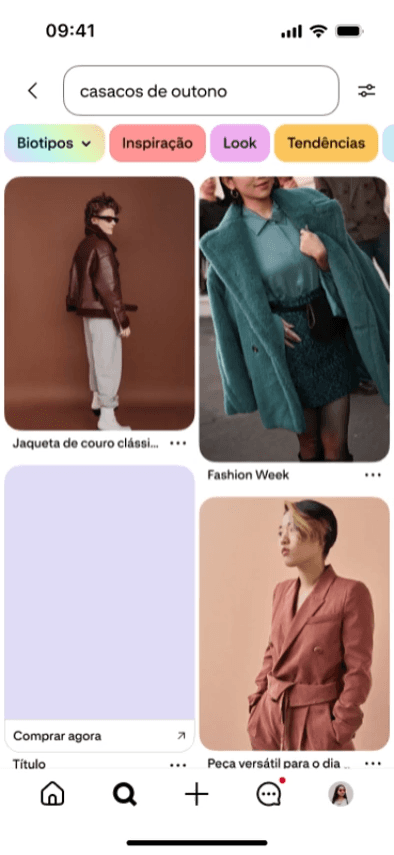 Com 45% dos cliques concentrados nos 10 primeiros resultados e 96% das pesquisas sem associação direta a marcas, o Pinterest enxerga esse momento como o ponto mais valioso da jornada. Os Anúncios no Topo da Pesquisa, atualmente em versão beta em todos os mercados monetizados, posicionam produtos no início dessa experiência, quando o consumidor está mais aberto a descobertas e decisões.