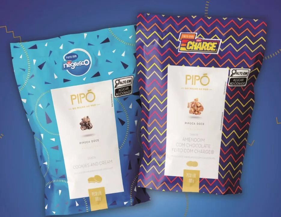 A Pipó anunciou duas novidades para a sua linha de pipocas “adocicadas” pelos produtos Nestlé: os sabores Cookies & Cream, feito com Negresco, e Chocolate com Amendoim, feito com o chocolate Charge.