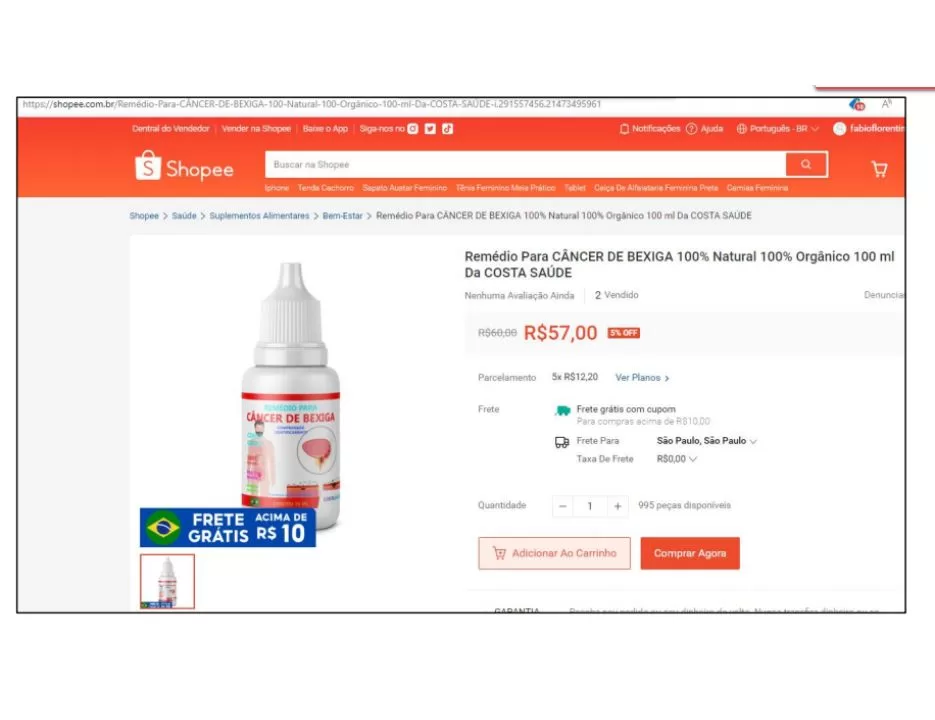 Outros produtos químicos nocivos, como o Álcool 92,8 NPM, regulado pela resolução 691/2022 da Anvisa, e um frasco catalogado como “Remédio para Câncer de Bexiga”, desprovido de registro na Agência, também podem ser encontrados na plataforma.