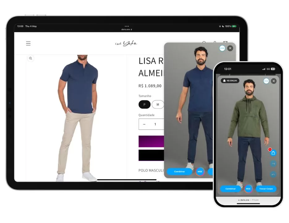 O executivo destaca, também, a grande variedade de pessoas em busca de uma mesma peça que, muitas vezes, pode não ser a ideal para o corpo dela. Com a Doris, o consumidor dispõe de uma experiência personalizada por meio do try-on virtual, que permite experimentar roupas em qualquer lugar, de forma rápida e com precisão próxima a 100%.