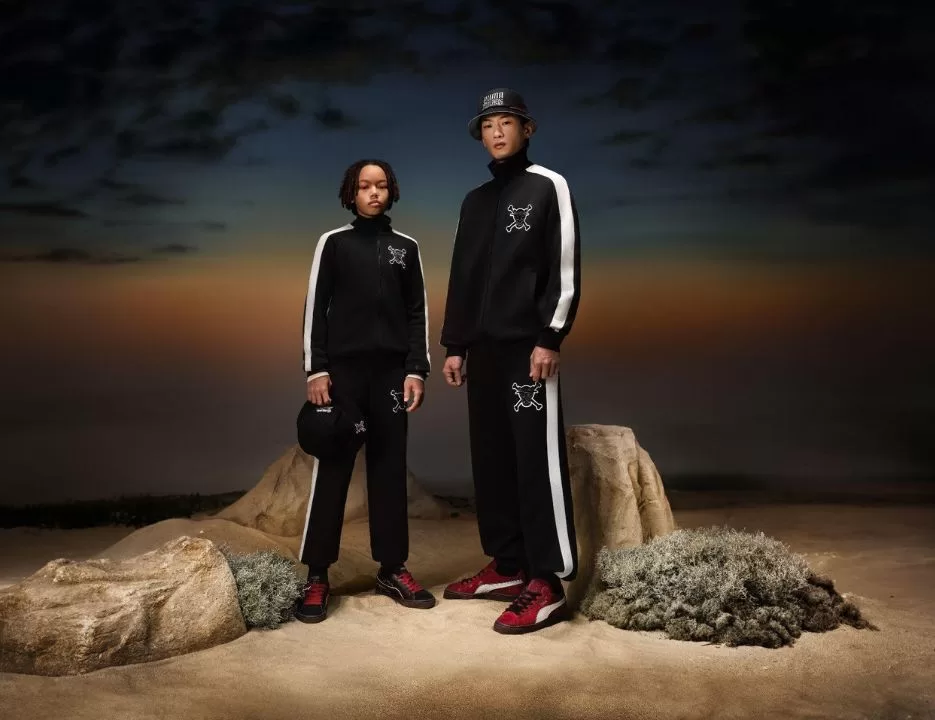 Puma e One Piece anunciaram uma collab exclusiva para celebrar os 25 anos do anime. A coleção inclui camisetas, moletons e agasalhos T7 estampados com as bandeiras dos piratas que protagonizam o Shonen escrito por Eiichiro Oda.