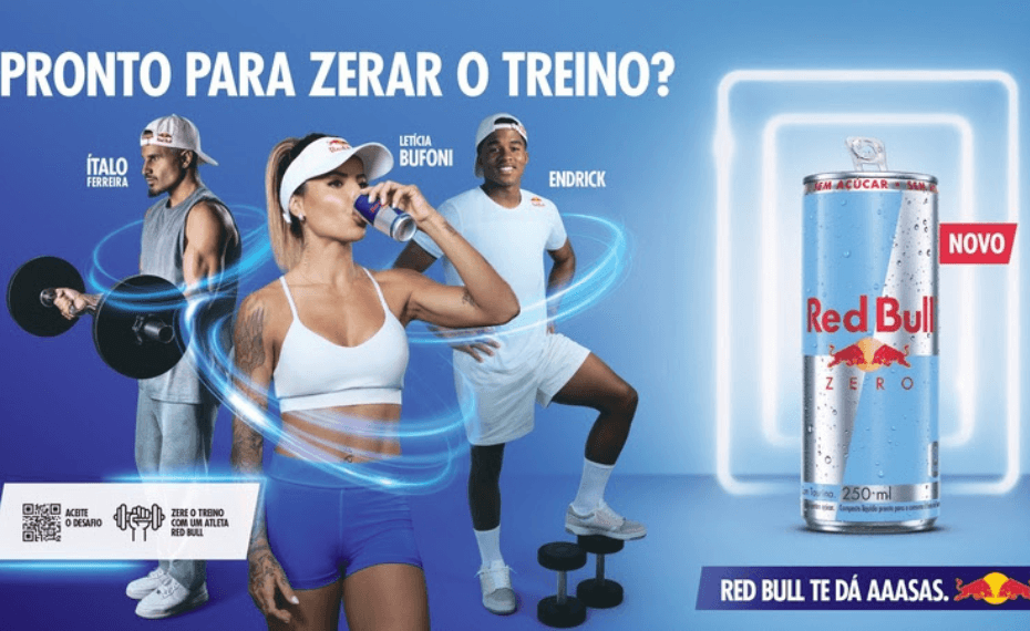 A Red Bull criou a ação “Red Bull Zerando o Treino”, que promove disputas gratuitas para o público no TikTok com desafios criados por três atletas da marca: a skatista Letícia Bufoni, o campeão olímpico de surfe Ítalo Ferreira e o jogador de futebol Endrick.