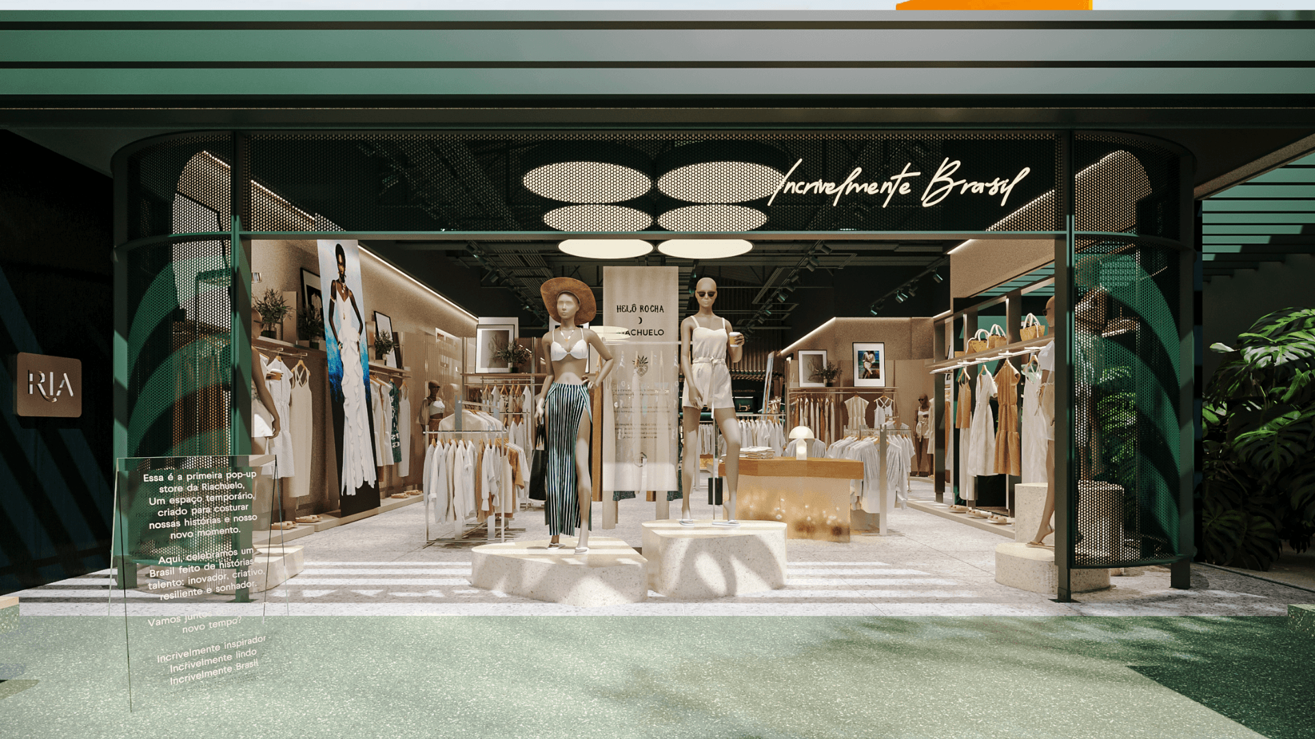O projeto arquitetônico incorpora referências brasileiras por meio de materiais, cores e elementos associados à identidade da marca. Inspiradas em paisagens naturais, as cores Verde Riachuelo e Bege Duna ganham destaque, combinadas ao uso de madeira, cerâmica e trançados. Plantas nativas e uma trilha sonora composta exclusivamente por artistas brasileiros completam a ambientação.