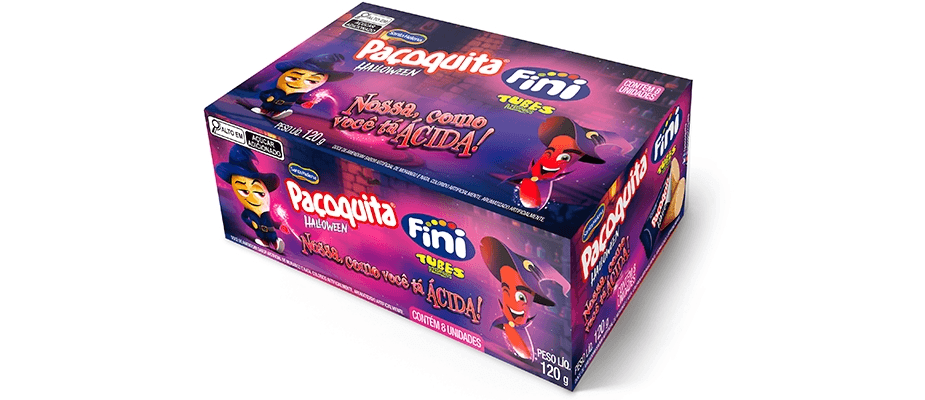 Para o Dia das Bruxas, as marcas de guloseimas se uniram para lançar a Paçoquita Fini Tubes, edição limitada que mistura a doçura da paçoca com o toque ácido do regaliz. A campanha “Nossa, como você tá ácida!” aposta no humor e na linguagem da Geração Z, criando uma collab ousada e divertida que reforça a presença das duas marcas entre jovens consumidores.