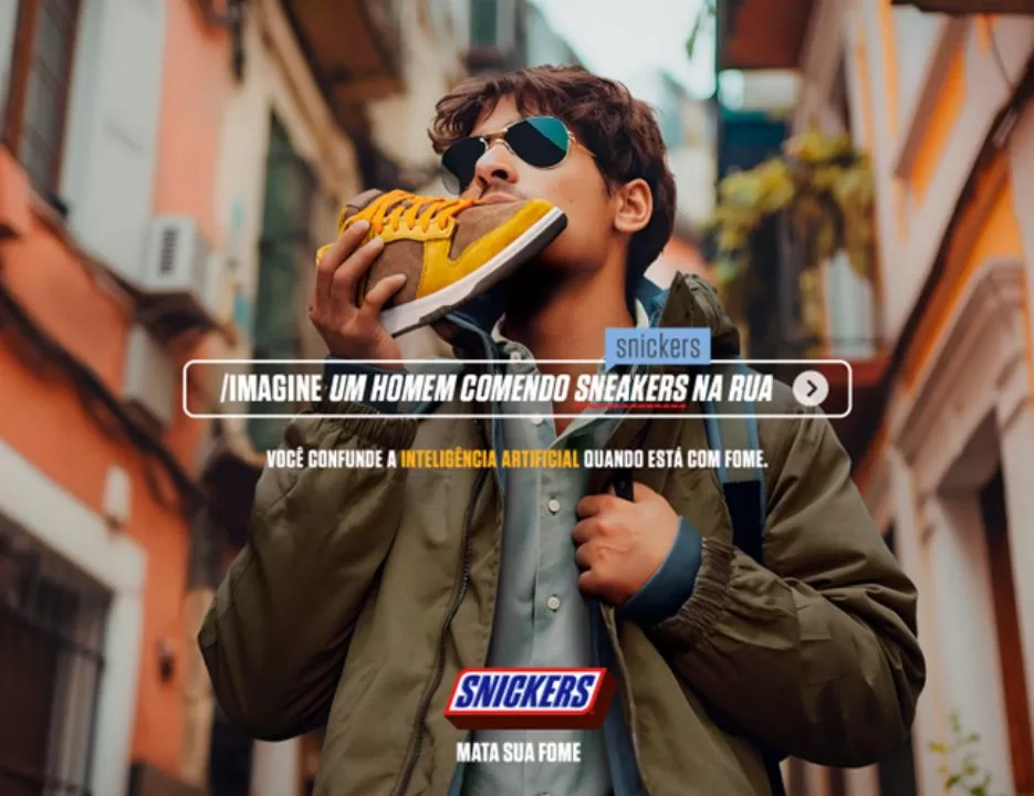 A Snickers lançou uma campanha utilizando pela primeira vez a inteligência artificial no Brasil reforçando – de forma divertida e inovadora – o conceito global da marca: você não é você quando está com fome. A campanha “Você confunde a inteligência artificial quando está com fome” apresenta imagens geradas pela inteligência artificial, após receber comandos (prompts) com erros de digitação de um usuário “confuso de fome”.