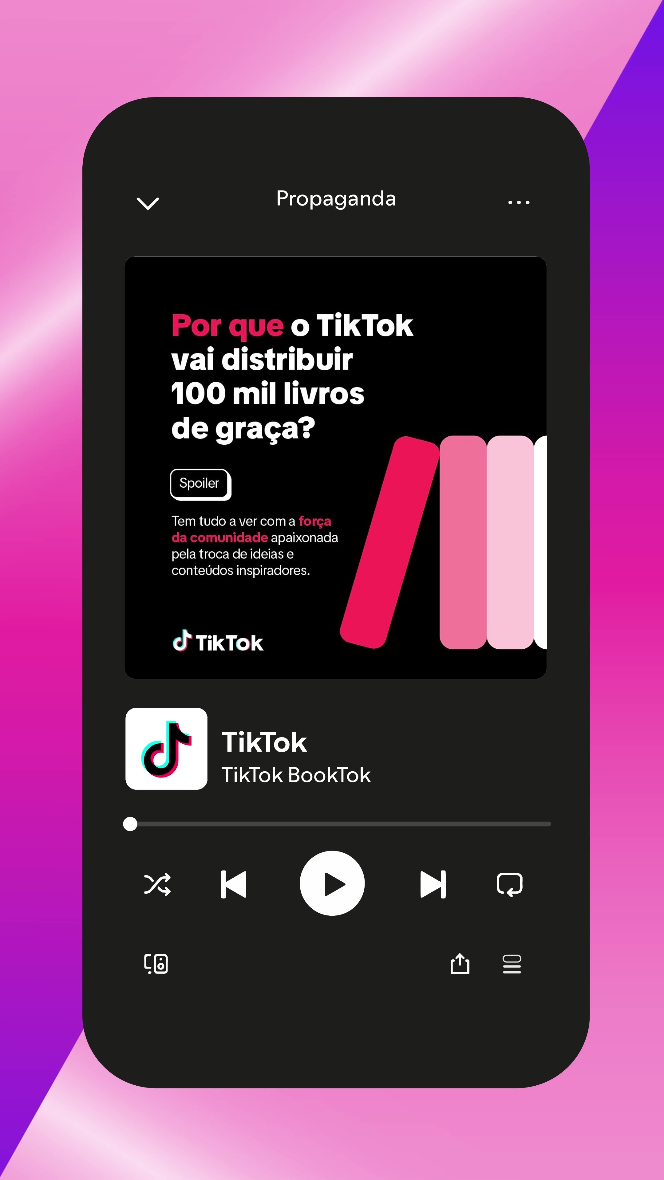 A campanha do TikTok, feita pela Publicis, se conectou com a crescente comunidade literária do Spotify — o BookTok — explorando o universo de livros e podcasts de forma criativa. A marca usou formatos em áudio e display para atrair e engajar os ouvintes, reforçando o TikTok como uma plataforma que inspira descobertas culturais. O sucesso da campanha “Year On TikTok – BookTok” foi refletido nos números de cliques e no tempo médio de escuta.