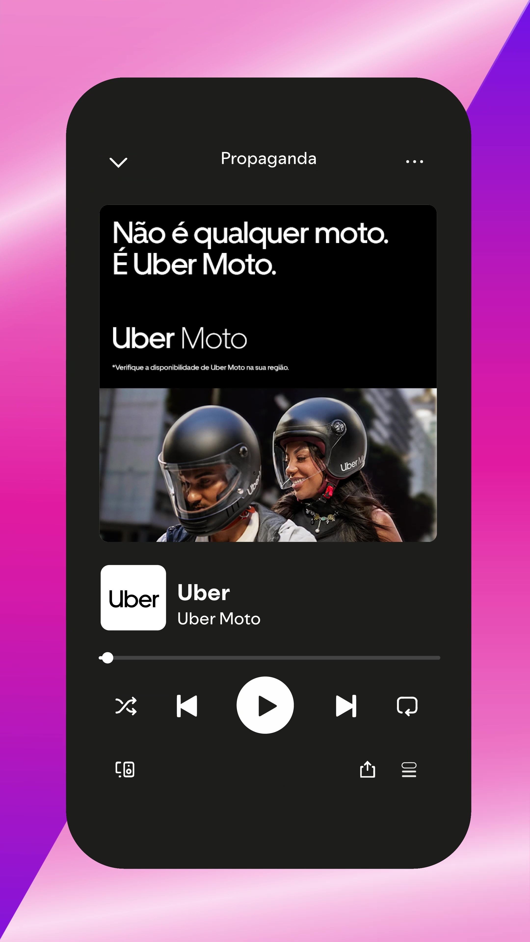 A campanha da Uber para o serviço de motos usou dados para entender onde, quando e como impactar seu público. A estratégia hipersegmentada, feita pela Wieden+Kennedy, permitiu que os anúncios chegassem nos momentos certos — como antes do ouvinte sair de casa ou durante o trajeto. O uso inteligente das ferramentas do Spotify garantiu resultados acima da média em conversão e memorização da mensagem.