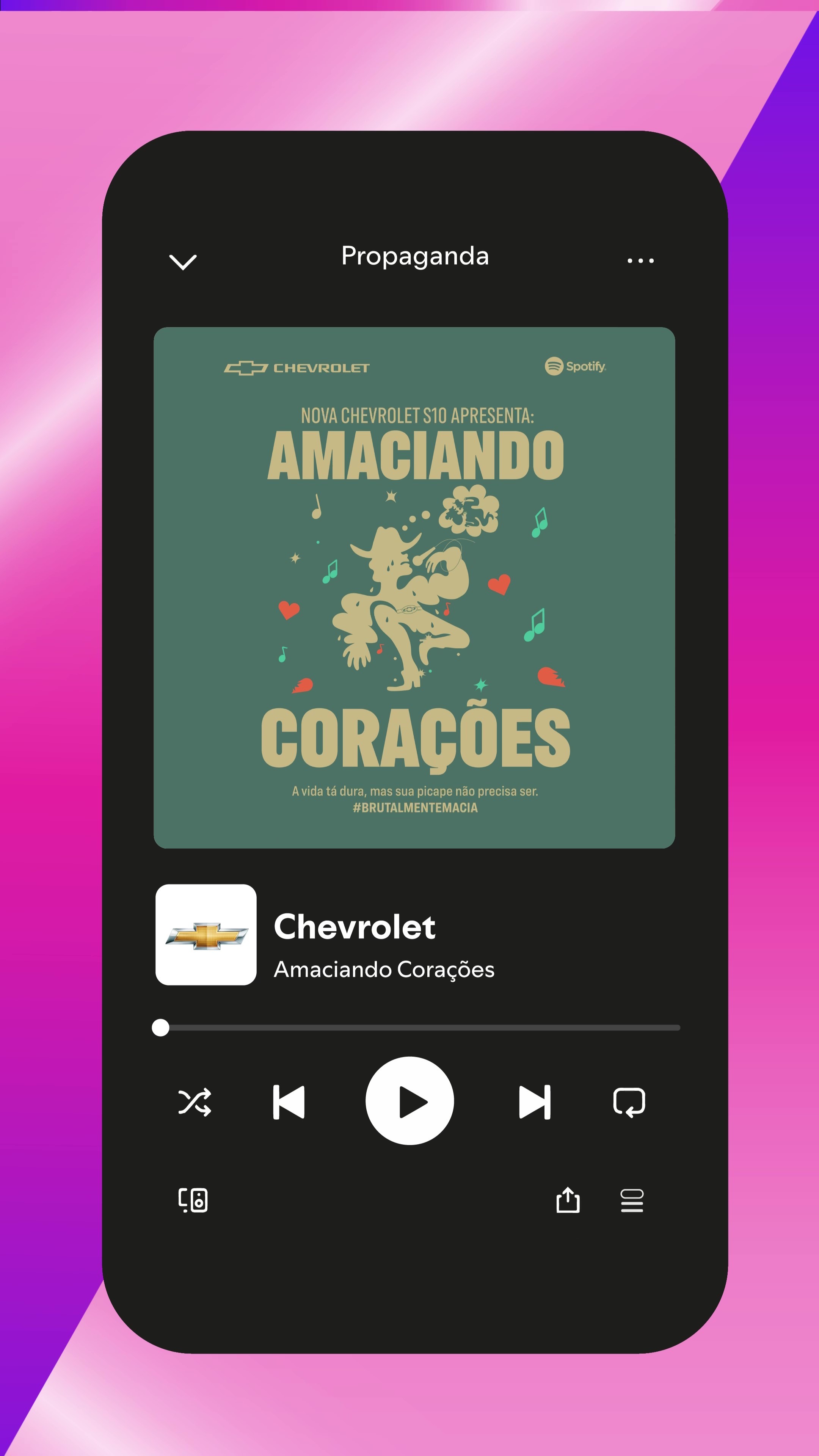 Para promover o Onix com motor turbo, a Chevrolet e a WMCCann criaram uma campanha sensível e bem-humorada usando o The Stage — espaço exclusivo para experiências imersivas no Spotify. A ação Amaciando Corações transformou dúvidas e críticas de consumidores em versos de músicas sertanejas, mostrando que o motor turbo pode sim ser suave. O tom leve e a execução criativa garantiram alto engajamento e identificação.