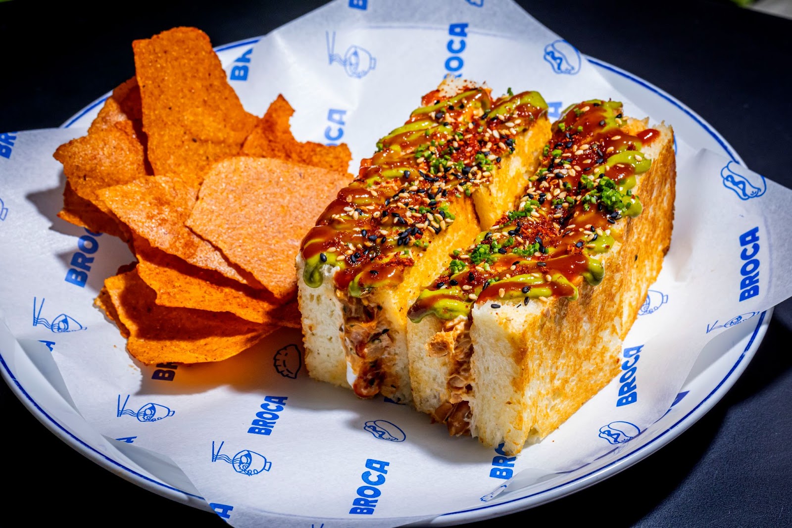 Na Vila Madalena, o bar Broca apresenta o Hot Sando (R$ 58), uma criação que traz shokupan (pão de leite japonês) com sour cream, Tabasco Sriracha, chilli, joelho de porco desfiado e pasta de abacate, acompanhado de nachos e suco do dia.