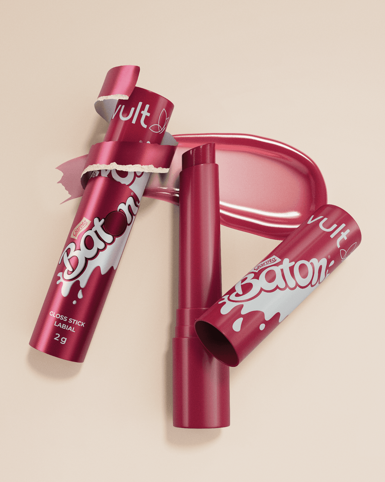 O produto chega em formato stick, com embalagem descascável que remete diretamente ao ritual de consumo do chocolate, reforçando a experiência sensorial da collab. O lançamento inclui quatro versões inspiradas em sabores clássicos do Baton (Chocolate ao Leite, Chocolate Branco, Morango e Frutas Vermelhas) combinando brilho espelhado, textura cremosa e fórmula leve que promete hidratação e conforto aos lábios.