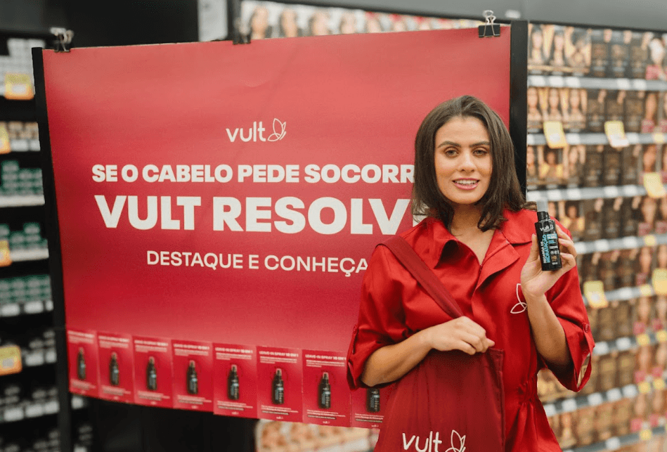 A Vult espalhou cartazes em pontos de venda estratégicos, convidando consumidoras a destacarem bilhetes para ganhar produtos de forma gratuita. Inspirada em experiências internacionais, a ação cria momentos diferenciados no varejo, com interações pensadas para atrair a atenção e aproximar o público da marca.